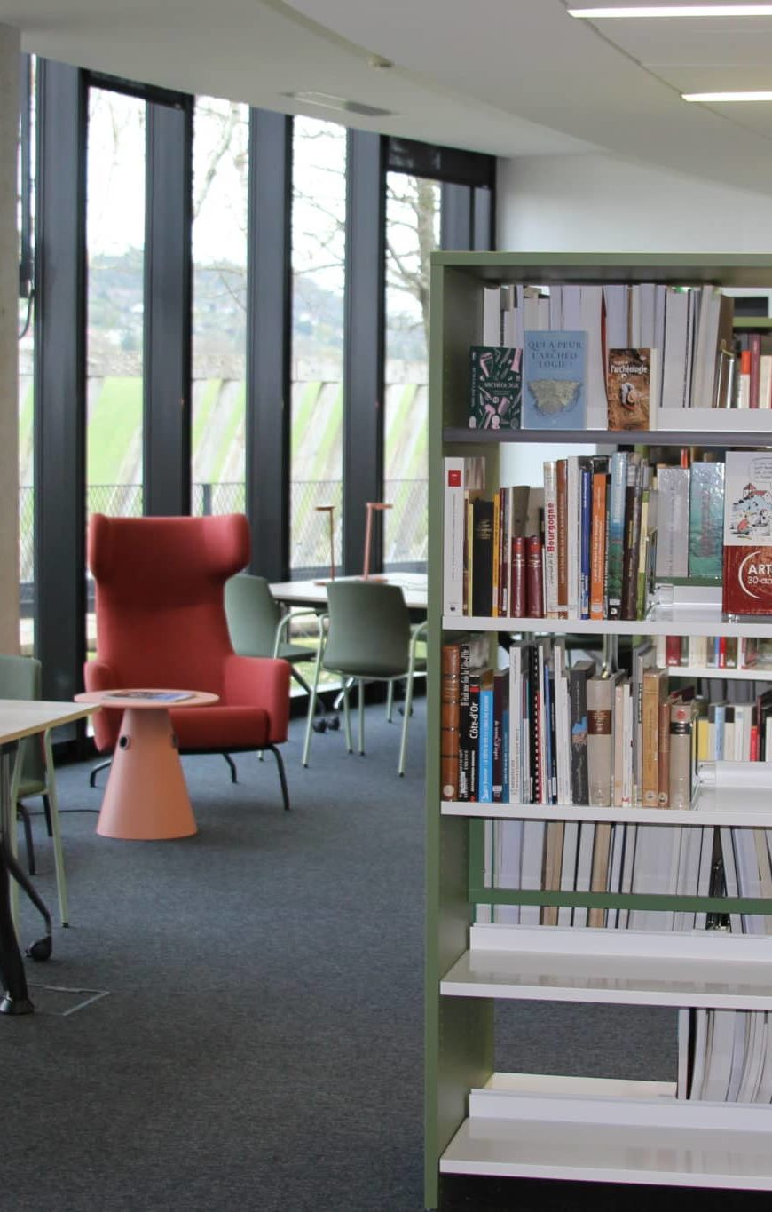 Au deuxième étage du musée, l’Alésiathèque offre une invitation à plonger dans l’histoire du site. Elle permet au visiteur de préparer ou d’approfondir sa visite dans un cadre accueillant et convivial. L’espace met à disposition une collection variée de ressources sur l’histoire d’Alésia, la période antique, l’archéologie, le mythe des origines : ouvrages historiques et de fiction, littérature jeunesse, podcasts, documentaires et supports numériques. Lieu de détente et de partage pour toute la famille, elle permet d’enrichir ses connaissances tout en passant un moment convivial.
