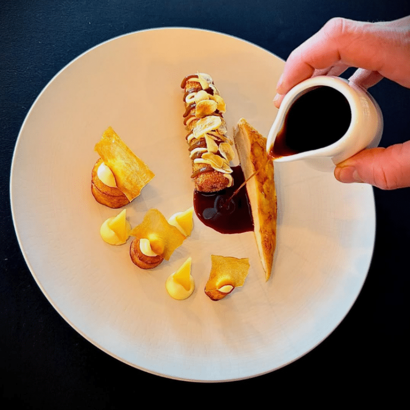 Imaginée par le chef Victor Lamy, la carte célèbre une cuisine de terroir revisitée avec créativité et exigence : chaque assiette sublime des produits locaux 100 % Côte-d’Or, frais et de saison, soigneusement sélectionnés auprès des producteurs bourguignons.